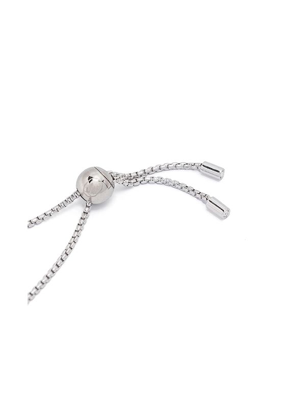 Slide-lock fastening, adjustable fit, rolo chain, bezel setting.