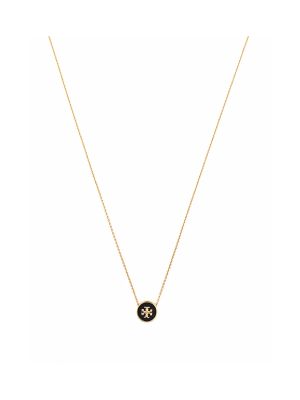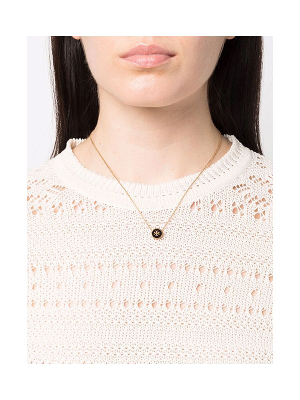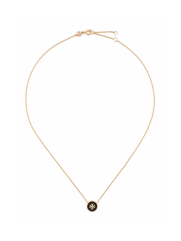 Black logo pendant necklace, gold-tone hardware, logo pendant, chain-link detailing and lobster claw fastening.